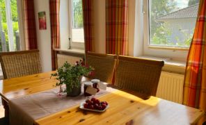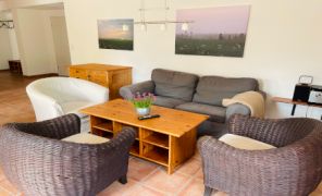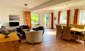 Sonata ist 90 m² groß, individuell und komfortabel eingerichtet und bietet reichlich Platz für 6 Personen für einen schönen erholsamen Urlaub. Sie liegt im Erdgeschoss unseres Hof`s. In dem geräumigen Wohnzimmer befindet sich eine gemütliche Couchgarnitur, SAT/TV, Radio, Telefon sowie ein schier endloser Blick über den See, die Wiesen und Felder. Sie verfügt über eine voll ausgestattete Kücheneckzeile mit Kühlschrank, Herd, Backofen, Toaster, Kaffeemaschine, Wasserkocher und Koch- und Essgeschirr sowie einen Esstisch mit den dazu gehörigen Stühlen. Sonata verfügt über 2 Schlafzimmer mit Doppelbett, in beide ist jeweils noch ein Babybett stellbar. Zudem ein Schlafzimmer mit einem Kingsizebett für Einen oder zwei die es kuschelig mögen.